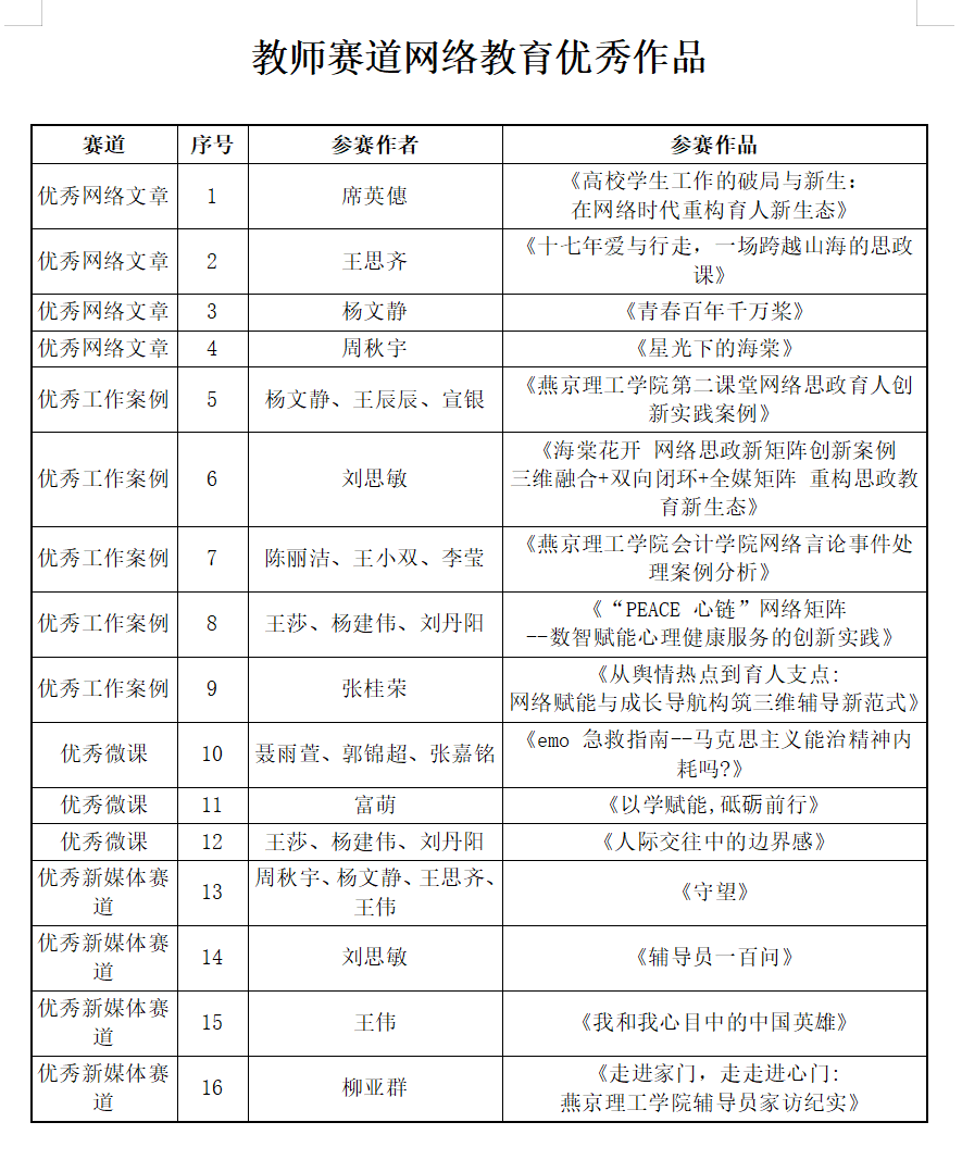 燕京理工学院关于大学生网络文化节和网络教育优秀作品评选结果的公示